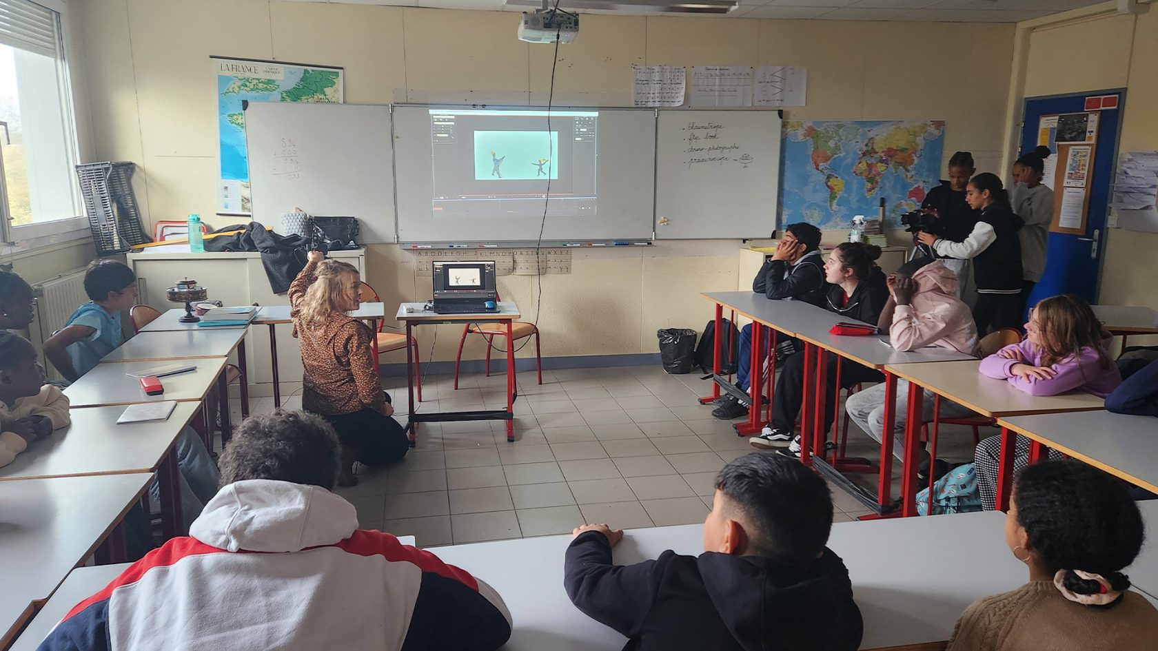 En lien avec le professeur d’arts-plastiques, Nicolas Barbé, Sarah Salem prépare un deuxième tournage où les élèves pourront expérimenter des effets visuels dans des conditions de studio. Avec la professeure de sport, Sophie Lucas, les élèves répèteront des mouvements de groupe chorégraphiés, qui seront reproduits lors d’un dernier tournage en extérieur, sur la plage.