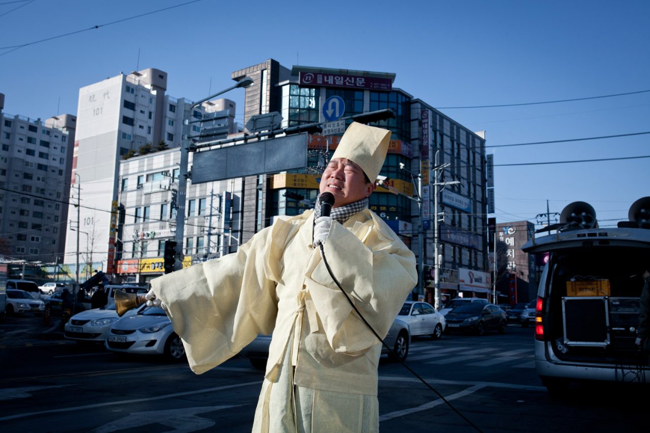 Samsung est le premier groupe sud-coréen, il représente un cinquième du PIB.Par le biais de ses soixante-dix-neuf filiales, Samsung est présent dans toutes les étapes de la vie des coréens. Il est possible de naître dans un hôpital Samsung, de faire ses études dans une université Samsung, d’habiter dans un appartement Samsung. Si on veut oublier les soucis du quotidien on peut se rendre au plus grand parc d’attraction de Corée, Everland, un parc Samsung. On peut se marier chez Samsung, s’assurer, s’habiller Samsung. Du berceau au tombeau.Cette forme extrême d'un capitalisme qui apporte prospérité à une nation entière, mais qui crée dans le même temps une dangereuse dépendance vis-à-vis d'une entité unique, est un paradoxe que j'ai voulu révéler via un récit photographique narré par une travailleuse Samsung fictive.