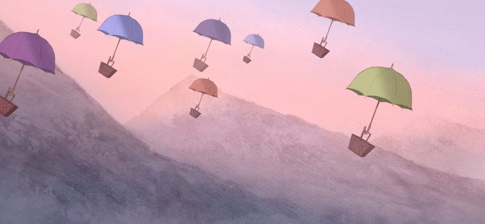 Dans un village reculé où règne une pluie incessante, Kyna, 6 ans, passe ses journées à jouer avec insouciance, bien à l'abri sous la "barbe-parapluie" de Din, son père. Une nuit, Nana, sa chienne adorée, disparaît.