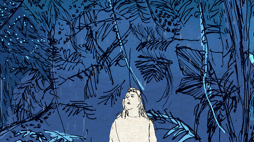 D’un trait brut et délicat, elle donne naissance à Cheveux, une petite fille qui traverse un long rêve et se retrouve projetée dans un univers mystérieux, peuplé de mèches mouvantes, de géants de pierre, de têtes à poux et d’une jungle épaisse et touffue… Dans cette nature omniprésente, au fil des paysages qui se succèdent, elle explore la peur comme un passage, une émotion à apprivoiser pour s’en émanciper.